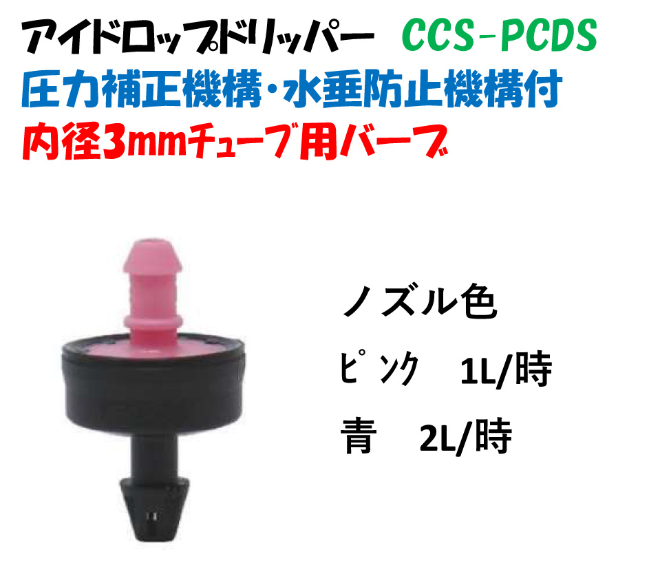 点滴ノズル アイドロップドリッパー CCS-PCDS ピンク 1L/時 青 2L/時 圧力補正・水垂防止機構付 点滴ノズル ボタンドリッパー イリテック
