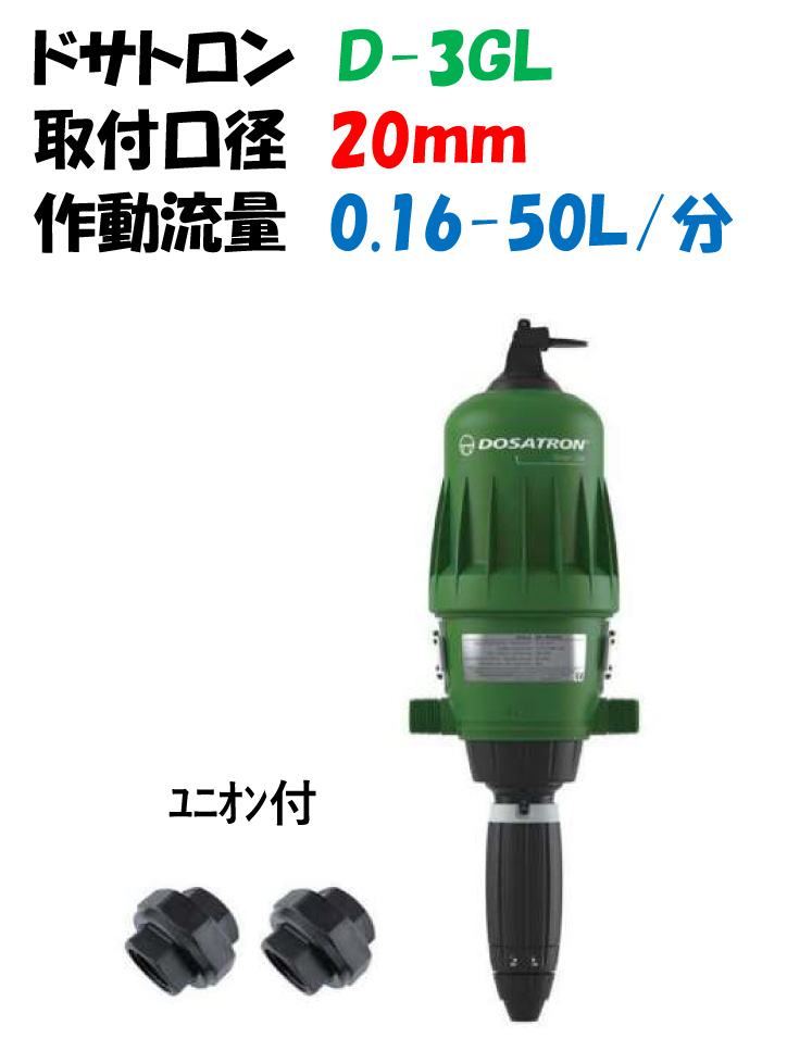 液肥混入器 ドサトロン D-3GL 20mm 3/4" 水量比例式 ユニオン×2ヶ付 肥料混入 かん水