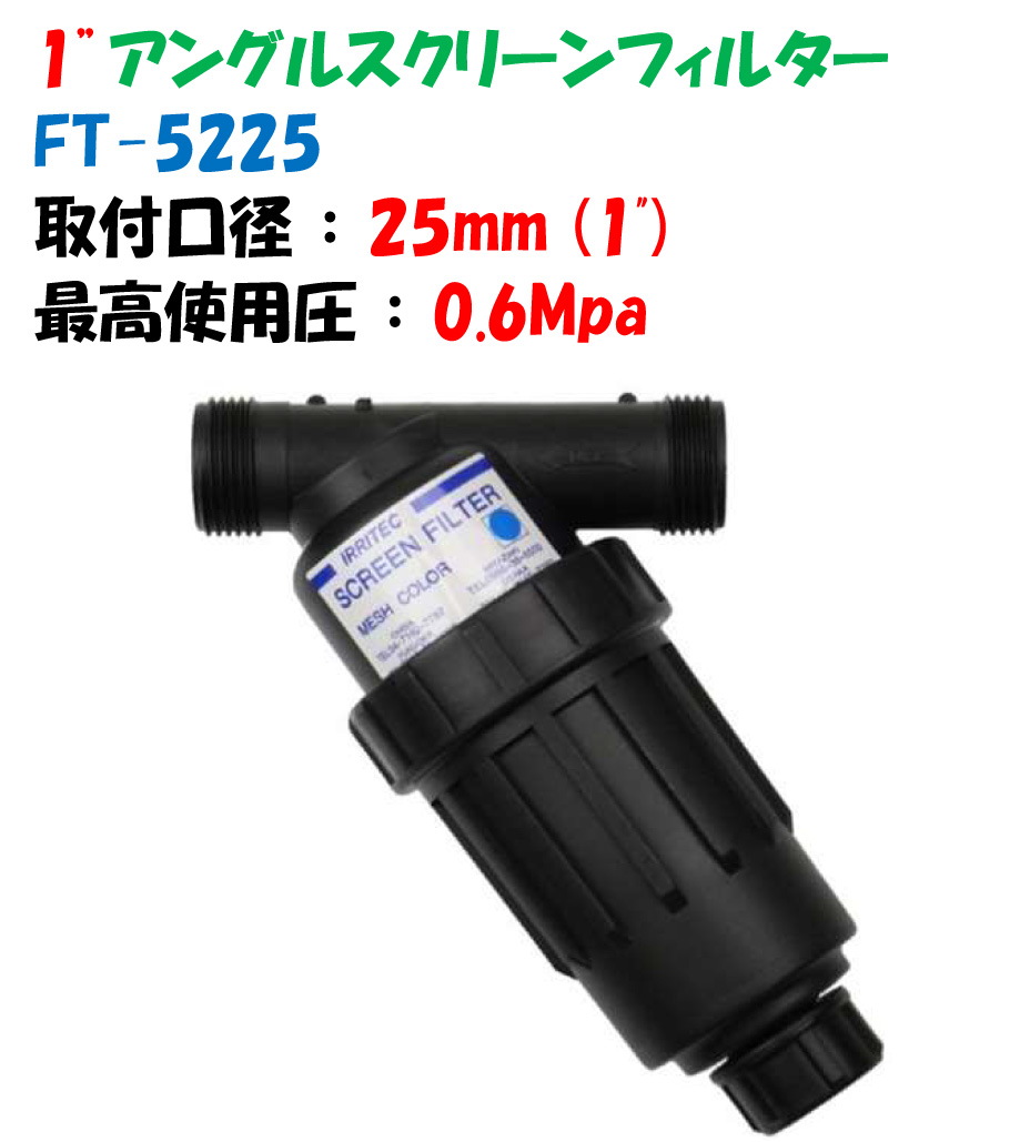 スクリーンフィルター FT-5225 25mm イリテック IRRITEC 1"アングルスクリーンフィルター(最高使用圧力:0.6Mpa)