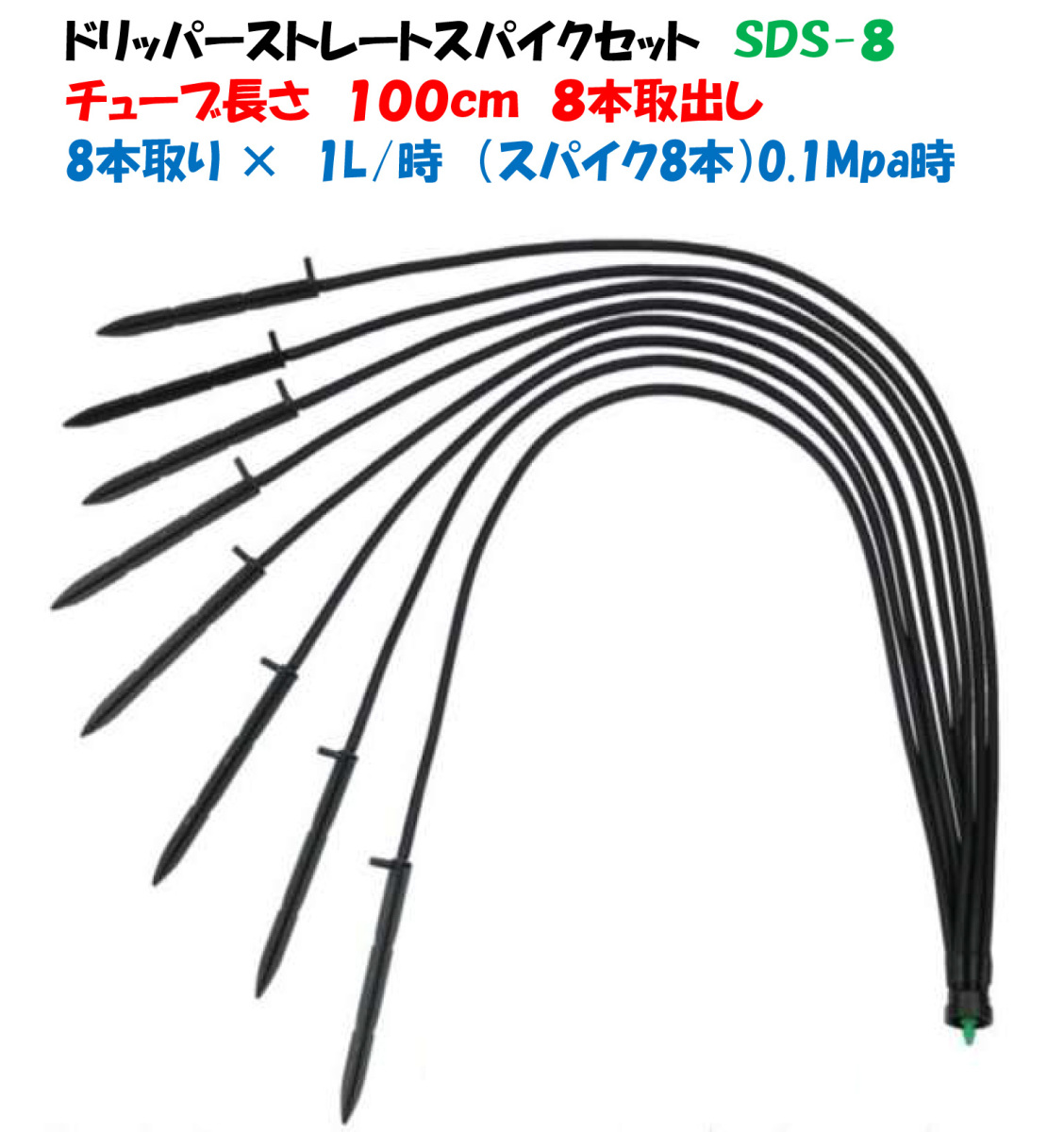 ドリッパーストレートスパイクセット SDS-8 8本分岐 1L/時 チューブ100cm