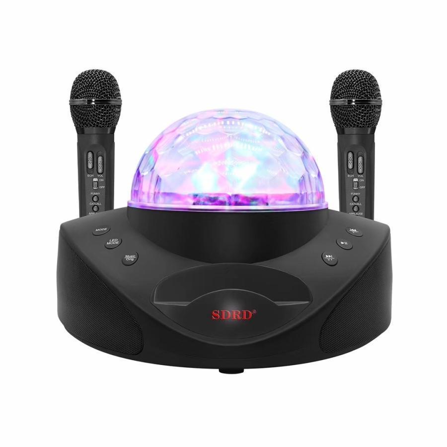 TVで人気 カラオケマイク 多機能 LEDライトとスマートフォンホルダー付き スピーカーマイクセット ホームKTV 手持ちマイク2本 ポータブルスピーカー