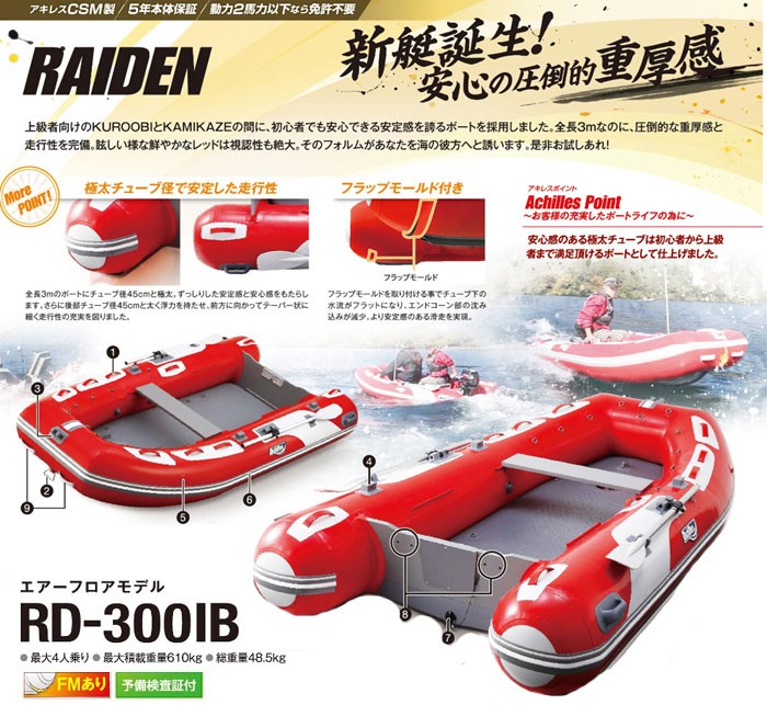 (アキレス) RAIDEN エアーフロアモデル RD-300IB 514090 Achilles-RD-300IB 予備検査証付き インフレータブルボート パワーボート ゴムボート