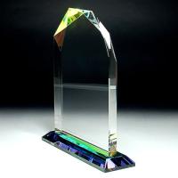 底面にホログラム加工をしていますので、見る角度でガラスの色が虹色に変化する美しい盾です。