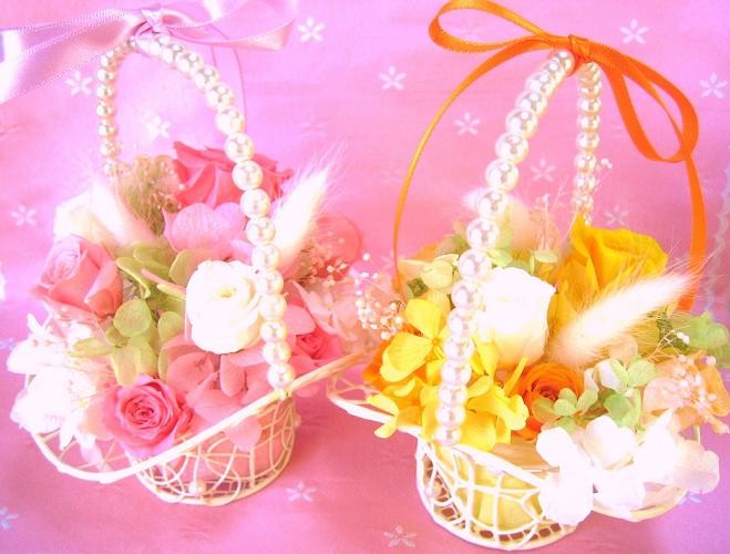 パールの取って付きかごのフラワーアレンジ。やさしさあふれるデザインは結婚祝い、誕生日、発表会など様々なご用途でお使いいただけます。(高さ16センチx横12センチx幅10センチ)ケース/ポイント10倍/フラワーアレンジメント【HLS_DU】【RCP】【あすつく_土曜営業】【あすつく_point】【ギフ_メッセ入力】fs3gm