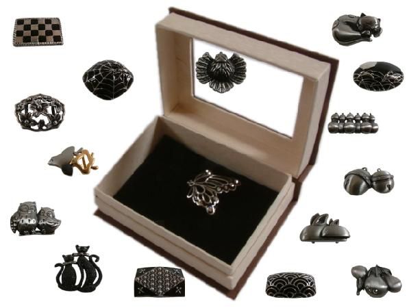 A「日本のかたち(しゃれもの)」 日本のかたちには意味・いわれがあります。お祝い事や祈る為の動物や品物があります。『願いが叶いますように』『運気が上がりますように』心を込めて帯留めにデザインしました。