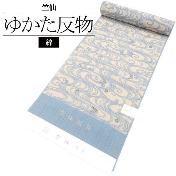 「竺仙」浴衣反物 松煙染 べんがら染小紋 流水 ブルー / 浴衣 ゆかた 反物 竺仙 ちくせん 東京本染 綿 夏 夏きもの 日本製 未仕立て 送料無料