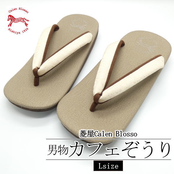 「Calen Blosso」メンズ カフェ草履 雪駄 ブラウン×ベージュ Lサイズ