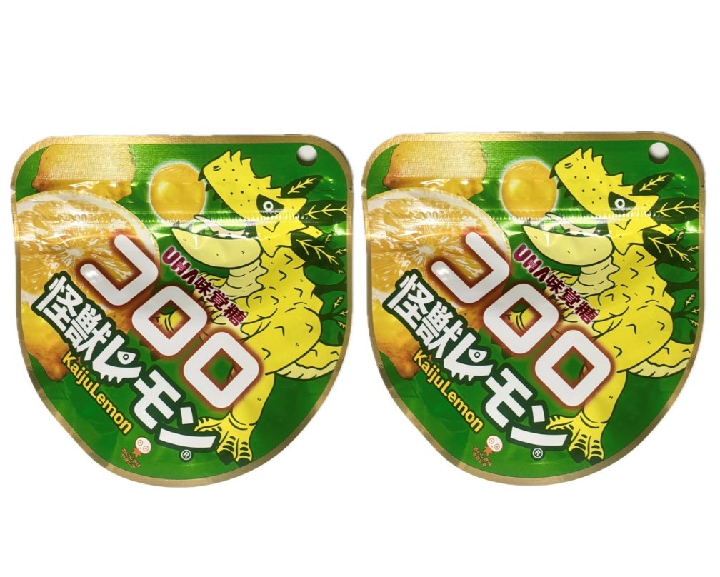 UHA味覚糖 コロロ 怪獣レモン 1袋(40g)×2袋セット 〜ぷるっと弾ける食感!〜 *レモン味 *甘みと酸味のバランスが良い、怪獣レモン果汁を使用したコロロです。 *怪獣レモンとは? 大きくゴツゴツした見た目から名付けられた、瀬戸内のブランドレモンです。太陽をいっぱい浴びて育ったレモンの自然な見た目は、美味しさと安全も証拠です。 ●アレルギー物質:牛肉、りんご、ゼラチン ●保存方法:直射日光、高温多湿を避け、保存して下さい。 ●のどに詰まらせないようによく噛んでお召し上がりください。 ●グミの皮は食べられます。 ●皮の結び目が含まれている場合がありますが、召し上がってもさしつかえありません。