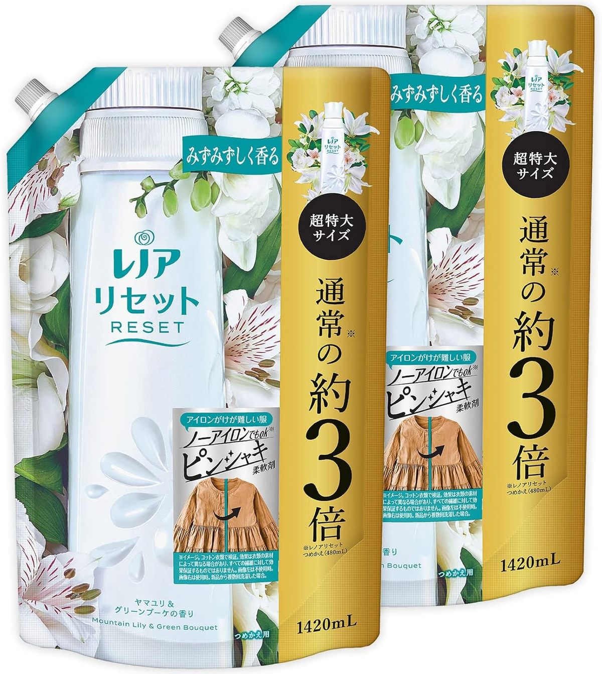 【まとめ買い2個セット】 [大容量] レノア リセット 柔軟剤 ヤマユリ&グリーンブーケ 詰め替え 1,420mL ×2個