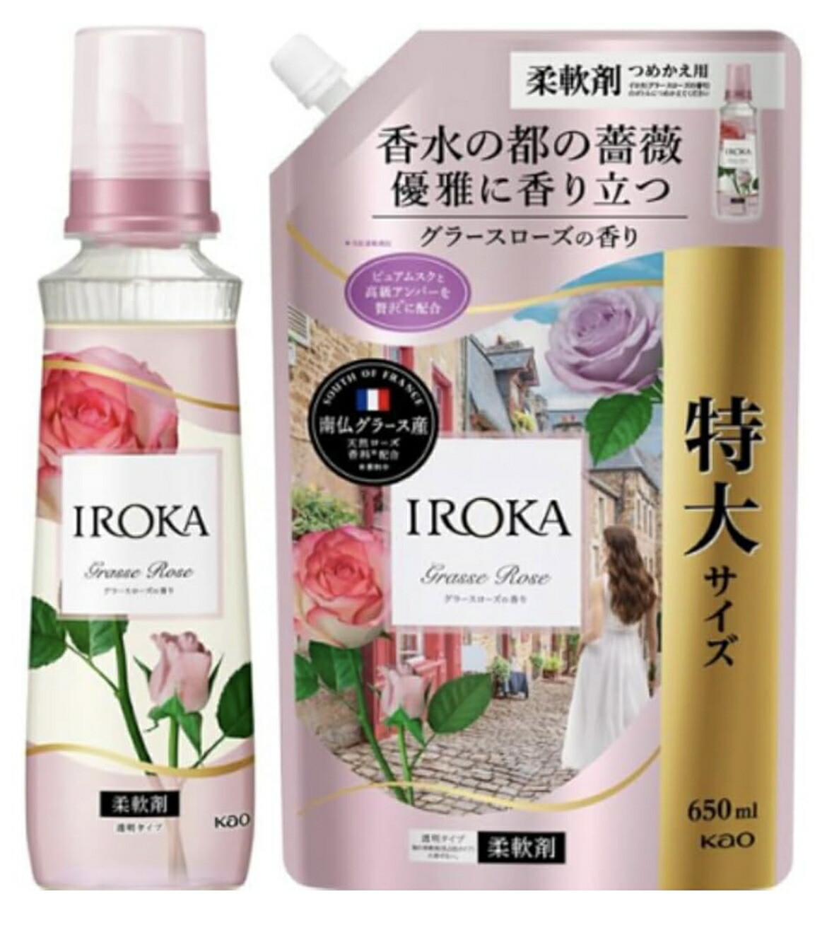 【まとめ買い本体+詰め替えセット】花王 IROKA イロカ 柔軟剤 グラスローズの香り 本体(540ml)+詰め替え(650ml)×1袋 セット 限定香調