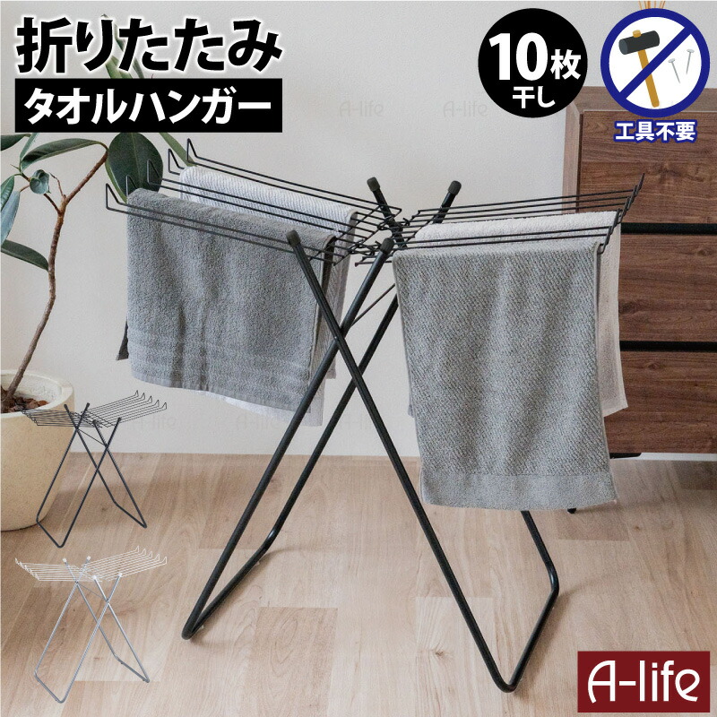 | 商品説明 | 無駄のないシンプルデザインで、お部屋に馴染むタオルハンガーです。 省スペースでフェイスタオルが10枚干せます タオルをかけるアーム部分は「ダブルアーム」になっているので、隙間ができて乾きやすくなっています。 完成品折りたたみ式なので、広げればすぐにご使用いただけます。 折りたたんだ時は厚さ7cmになるので、使わないときは隙間などに収納できます。 梅雨や花粉、雪の時期などの部屋干しに便利です。 シンプルなデザインで使いやすい。 【配送について】 詳しくは配送についてをご確認お願い致します。 詳細はこちら>> |