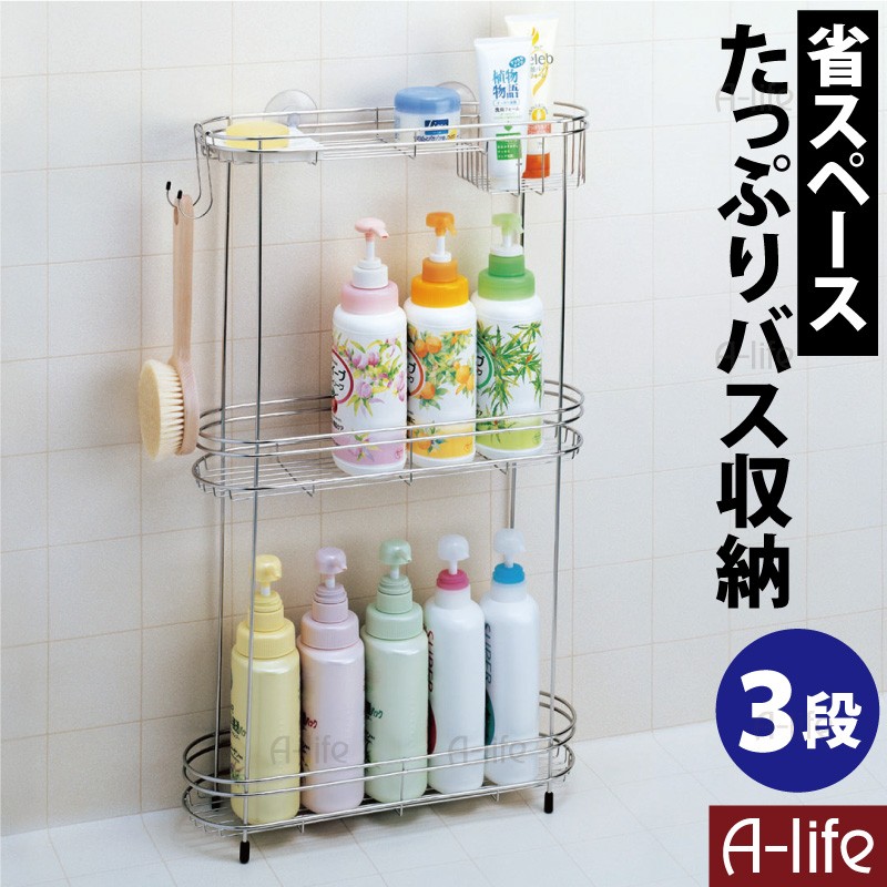 | 商品説明 | ●大家族にぴったり ●ポンプ式シャンプーを約10本収納可能 ●ユニットバスでも邪魔にならない スリム&ワイド設計 シャンプー、リンス、ボディソープ、その他いろいろ いっぱい お風呂で使うグッズって思いのほか多いよね。 お父さん用のシャンプー・リンスが別にあったりして、場所をとりがち。 そんなたくさんのグッズをバスルームの床や棚に置いておくことで、お掃除する時いちいち動かすのが大変ですよね でも、そんな手間をラクにしてくれるのが、 このステンレスバスカウンター。 ポンプ式の容器が5本も収納できちゃう上、石けん置きや洗顔フォーム入れ、ボディブラシ掛けも付いているから、入浴グッズはココに収納! これなら、狭い浴室もすっきり使えます!! 掃除する時も、このバスカウンターごと動かせるから便利! ステンレス製だからカビが生えにくく、お手入れが簡単! 脚(黒色の部分)のスベリ止めゴムに上下アジャスター機能があるため、床が少々デコボコしていてもグラつかないように調節できます また壁面にぴったり取り付けられる吸盤2個付きなので転倒防止! 【配送について】 |