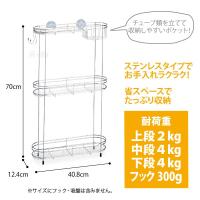 >>1段 シャワーフック | サイズ | 本体サイズ幅40.8cm×奥行12.4cm×高さ70cm アジャスター伸縮高さ 約7mm |