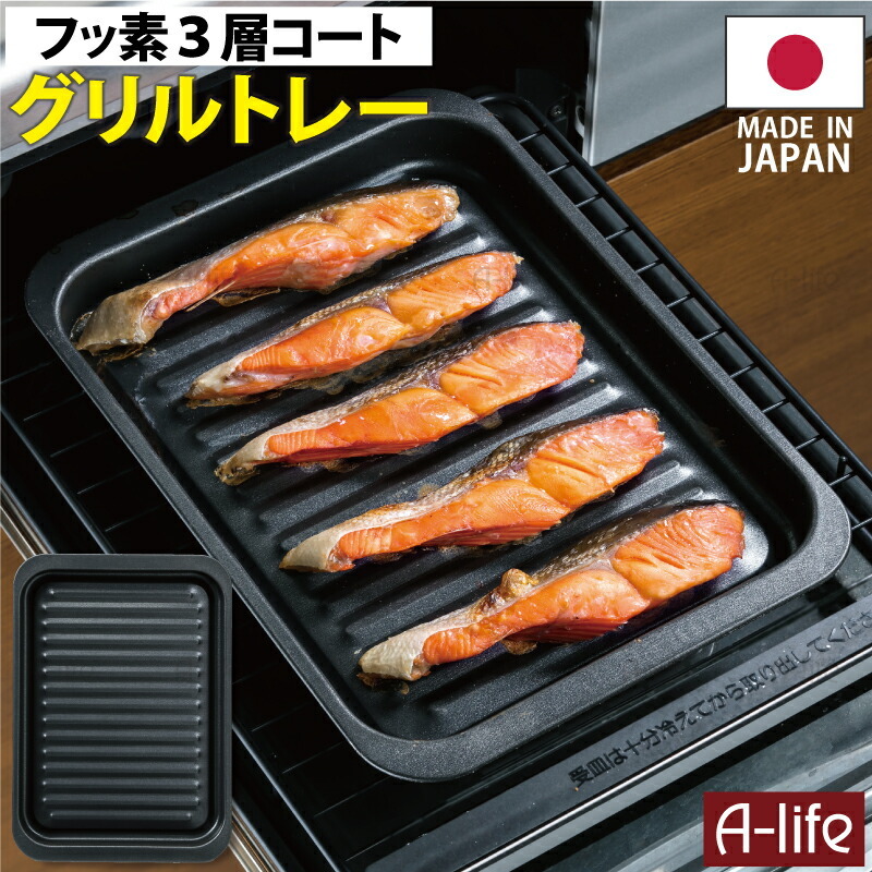 | 商品説明 | ガスコンロ・IHクッキングヒーターのグリルを活用 便利なたっぷり使えるワイドサイズトレーで、簡単調理 3層フッ素コートで、こびりつきにくくお手入れ簡単です。 焼き魚や肉料理にも、余分な脂が溝に落ちて、ヘルシー調理 山型構造のトレーが食材の余分な油を落として、周囲の溝が受け止めます。 深型トレーなので、脂の多い食材も安心です。 フライのあたため直しにも、グリルが便利です。 大型オーブントースター、オーブンでもご使用いただけます ※使用機器の庫内のサイズをお確かめの上、お買い求めください。 日本製 ガスコンロ、ラジエントヒーターなどの直火や、電子レンジ、IHクッキングヒーターでは使用できません。 お手入れは、十分に冷めてからやわらかいスポンジに食器用洗剤をつけて洗ってください。 浸け置き洗いはサビの原因になりますので、お避け下さい。 食器洗い乾燥機では使用しないでください。 トレーはガスコンロ・IHクッキングヒーターのグリル内の焼き網やプレートの上に置いてご使用ください。 フッ素樹脂はご使用により、徐々に剥離・摩耗します。永久に付着しているものではありません。 尚、食品衛生法の規格に適合している材料を使用していますので、塗装面が剥離してもご心配には及びません。 【配送について】 詳しくは配送についてをご確認お願い致します。 詳細はこちら |