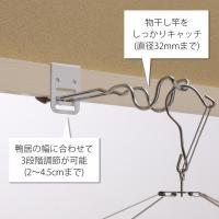 | 説明 | ネジ・釘・工具不要の簡単取付! 室内物干し掛け2個入り 鴨居や扉枠などにワンタッチで付け外しができます。 ※取付可能な鴨居や窓枠、扉枠は2〜4.5cmです。 2個使いで、物干し竿を掛けると、たっぷり室内干しができます。 ※物干し竿は径32mmまで使用可能です。 雨や雪の日はもちろん、花粉や粉じん対策として、また冬場のコート置き場として、必要な時にすぐ設置できます。 ピンチハンガーを掛けたたり、部屋干しに便利です。 ※竿・ハンガーは付いておりません。 【配送について】 詳しくは配送についてをご確認お願い致します。 詳細はこちら |