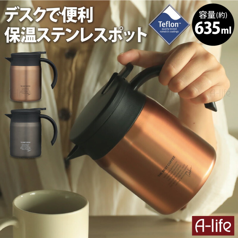 | 商品説明 | おしゃれでコンパクト デスクワークにおすすめの 保温ポットです。 内側にテフロン加工を施しているので、匂い移りがしにくく、コーヒーの香りが楽しめます。 また、汚れが付きにくく、落ちやすくので衛生的で、お手入れ簡単です。 真空2層構造で、しっかり保温します。 ドリッパーを載せて、ダイレクトにコーヒーを淹れれば、温度をキープしやすく美味しく頂けます。 飲みたいときにすぐに注げるワンタッチ式。レバーを押すだけで注げる簡単構造です。 ※次のものは入れないでください。 ・ドライアイス、炭酸飲料 炭酸ガスの圧力で飲料が溢れる場合があります。 ・牛乳、乳飲料、果汁など 成分が腐敗する恐れがあります。 ・みそ汁、スープなど塩分を含むもの 本体内側はステンレス製ですが、サビや変色などの可能性があります。 ・アルコール類、お茶の葉、果肉など 詰まり、漏れなど破損の原因になります。 【配送について】 詳しくは配送についてをご確認お願い致します。 詳細はこちら |