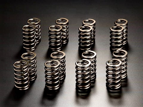 エンジンの高回転化に伴うバルブ速度の増加により、ノーマルバルブスプリングではジャンピングを起こしてしまう場合があります。また、固有振動数が低いために高回転域においてサージングを起こしてしまう場合があります。JUNでは、セット時やバルブリフト時に最適な荷重が得られるバルブスプリングを製作しました。ハイカムを使用してバルブリフト量が増えた場合でもバルブスプリングの密着余裕が十分確保されているため、経たりもなく耐久性も大幅に向上しています。