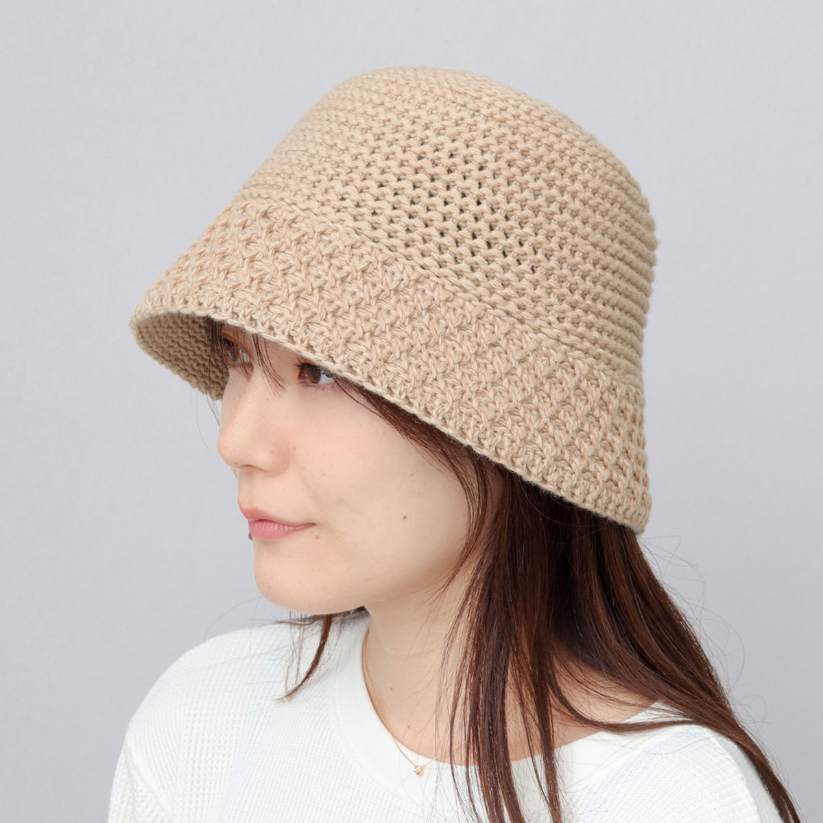 通気性に優れた、やや透け感のある生地感に加え、程よいシャリ感のある糸がクラウン部分内側に面するように編み込まれているので、長時間の着用時もストレスフリーに。