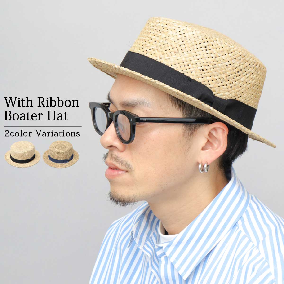 ◆リボン付きローガハット◆天然素材を使用した、ナチュラルな風合いのカンカン帽。