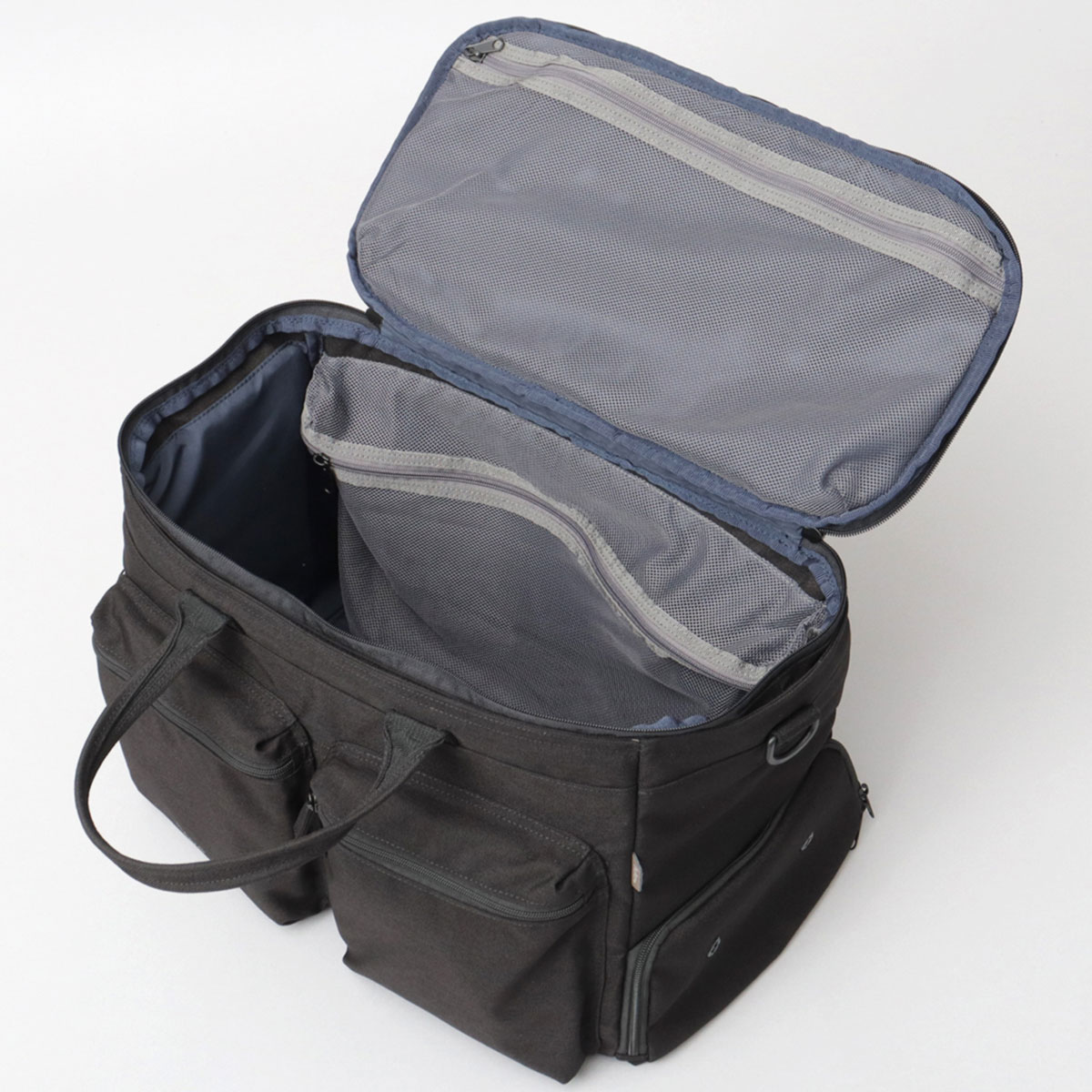 天面部分にもファスナー付きメッシュポケット完備し、無駄のなくスペースを活用。