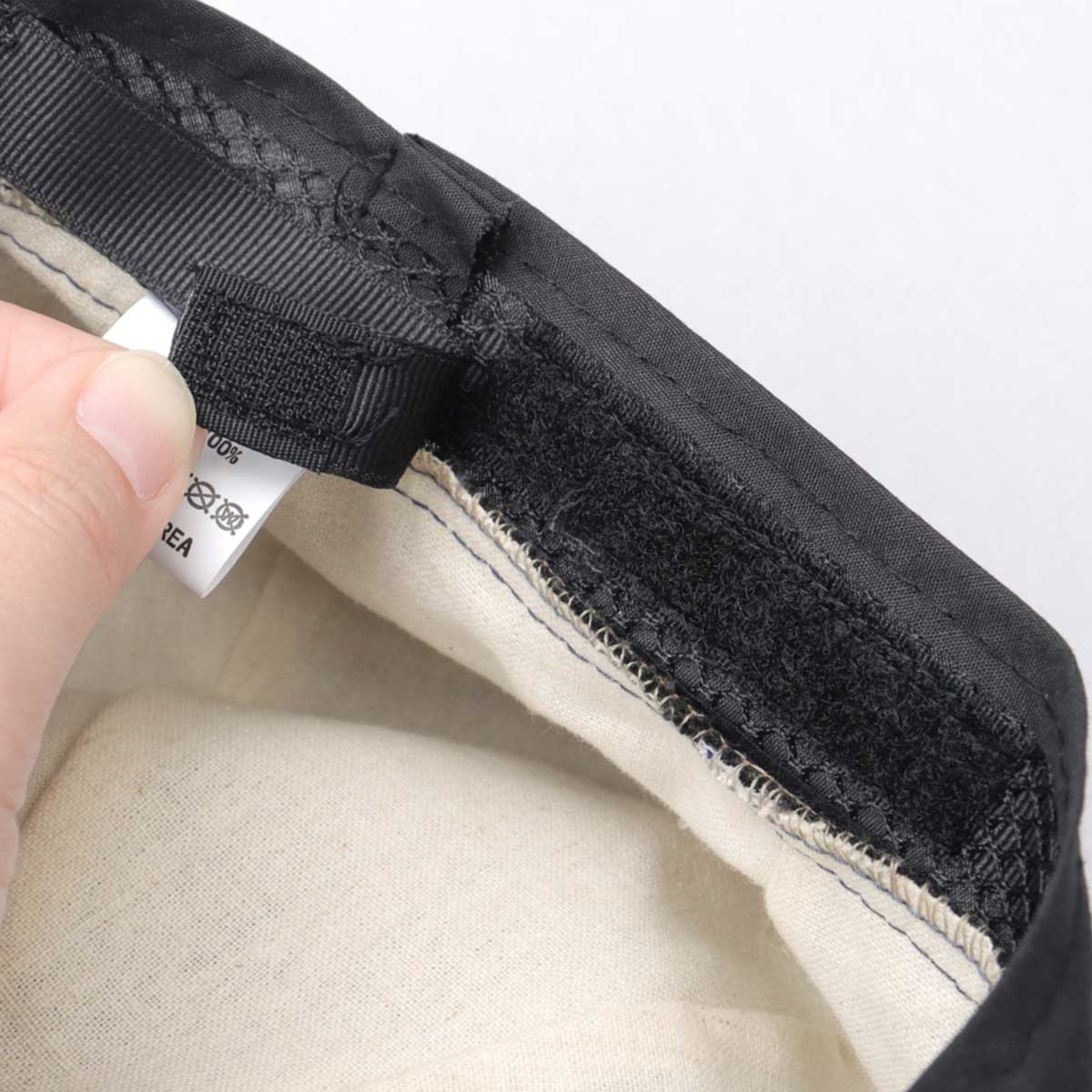 スベリ(汗止め)内側に配置したマジックテープ式アジャスターで、幅広いサイズの調節が可能。