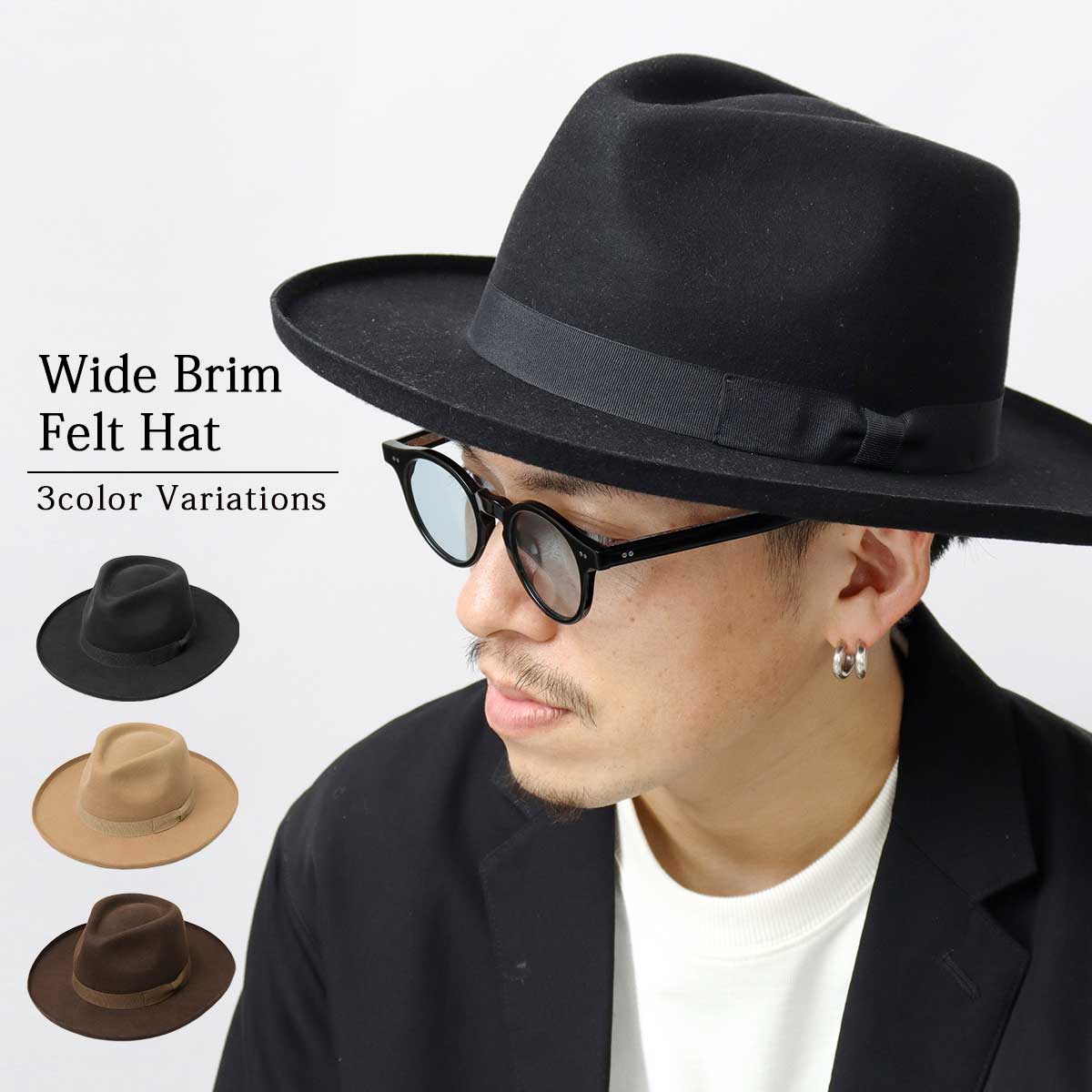 ◆ワイドブリムがアクセントの中折れフェルトハット◆
