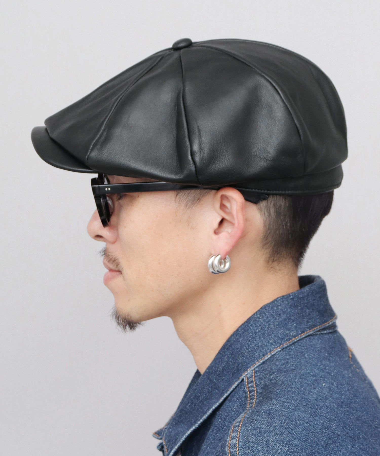 リアルレザーならではの生地感が、大人な雰囲気を味わえるレザーキャスケットハンチングです。
