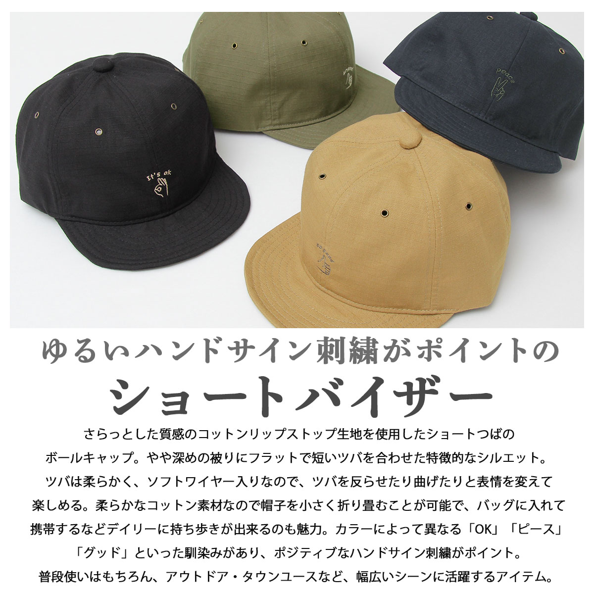 ”ゆるいハンドサイン刺繍がポイントのショートバイザー”