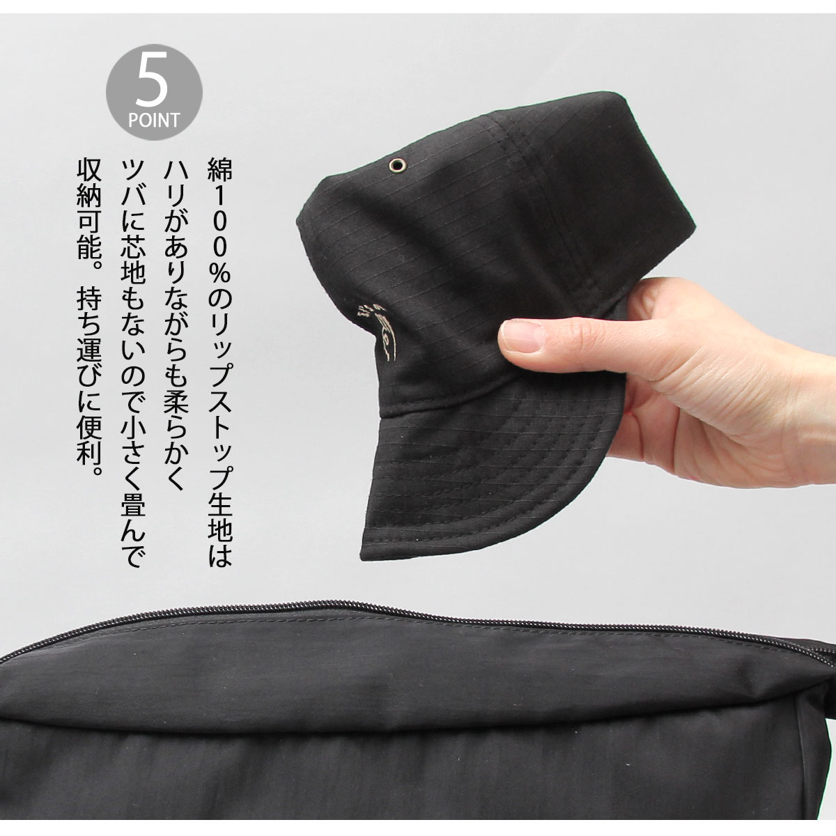 柔らかなコットン素材なので帽子を小さく折り畳むことが可能で、