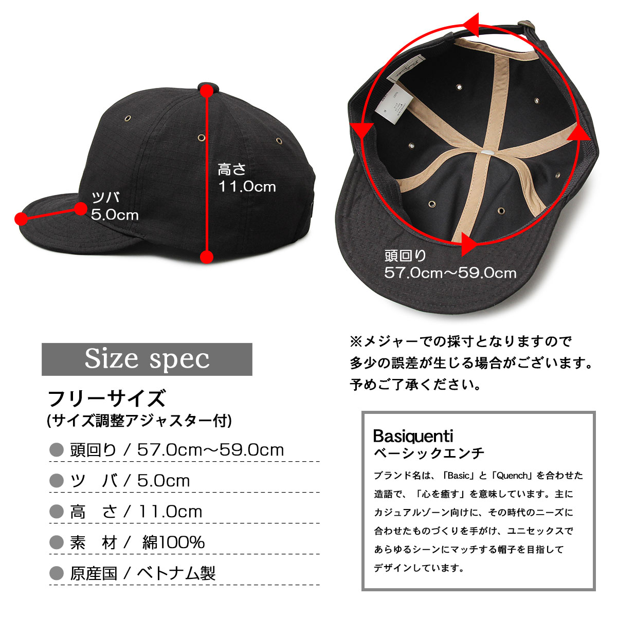 ベーシックエンチ Basiquenti 帽子 キャップ つば 短い ショートバイザー 野球帽 刺繍