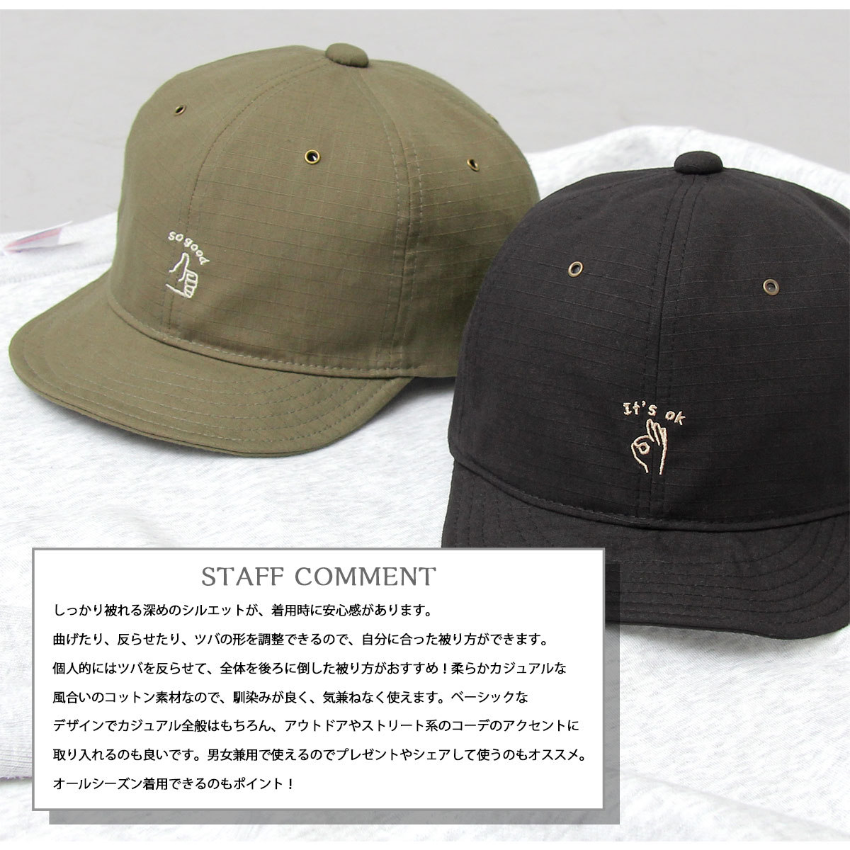 さらっとした質感のコットンリップストップ生地を使用したショートつばのボールキャップ。