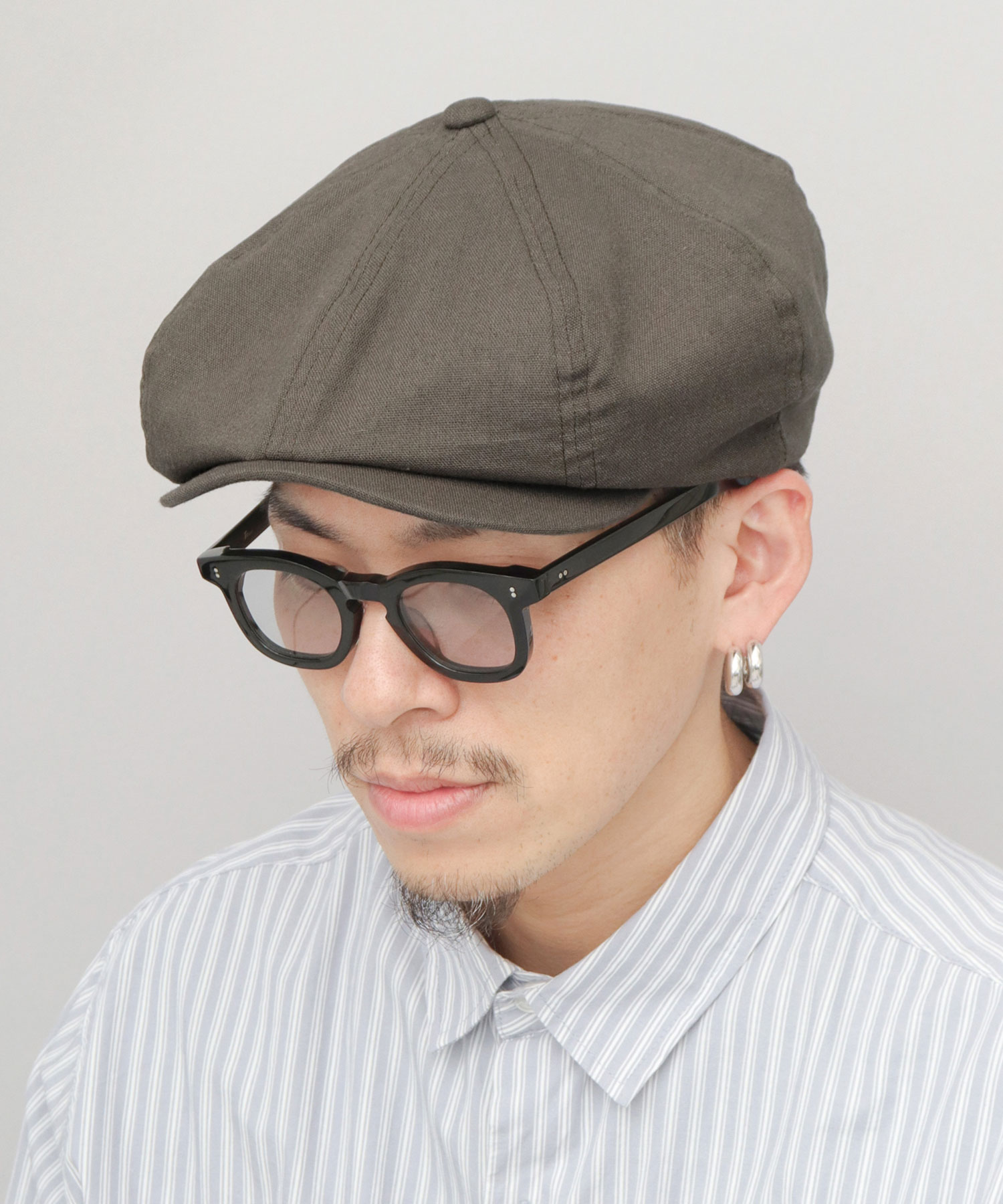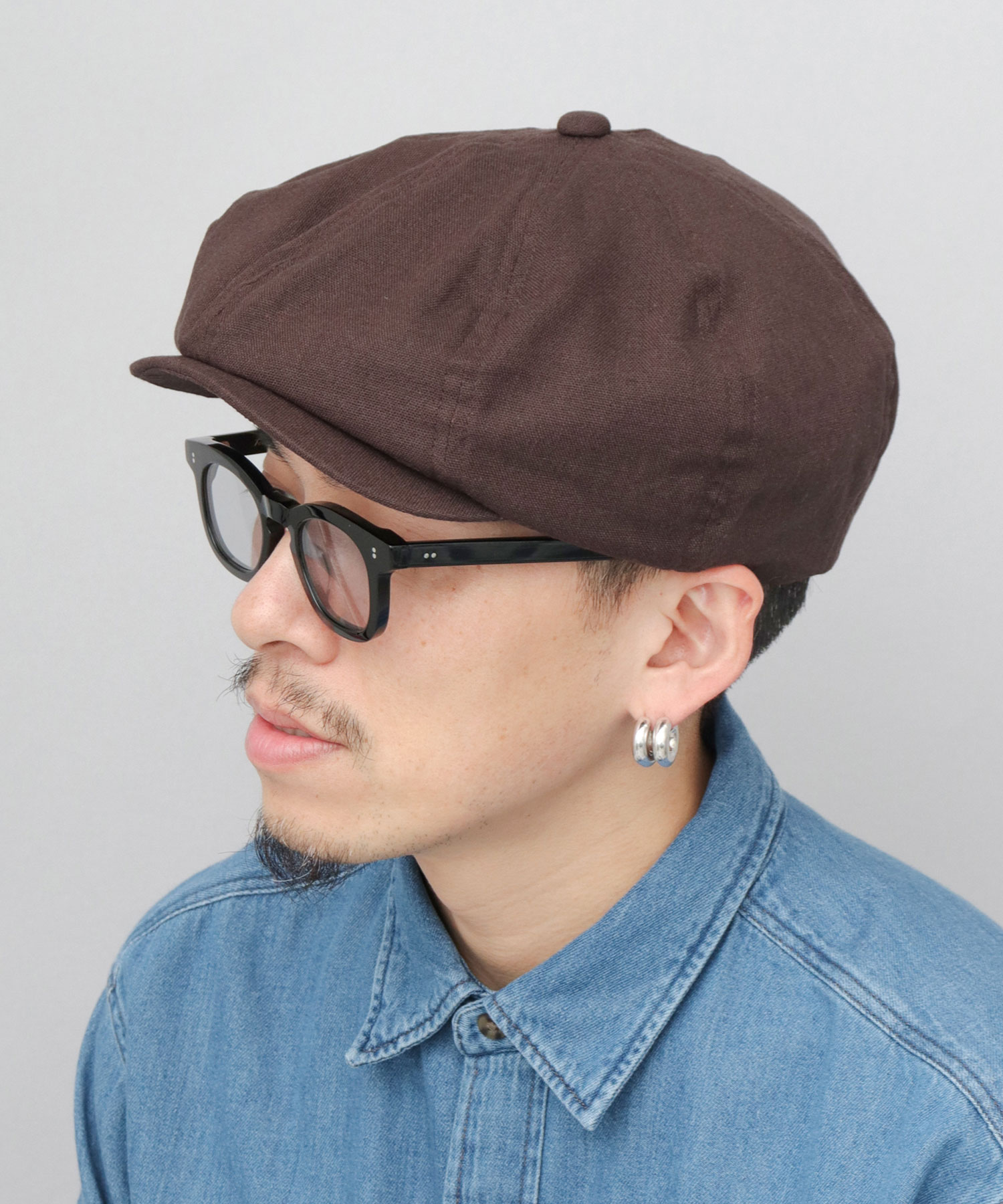 ◆麻混ビッグキャスケット◆8枚はぎのクラウンにたっぷりとボリュームを持たせた、ビッグフォルムのキャスケットハンチング。