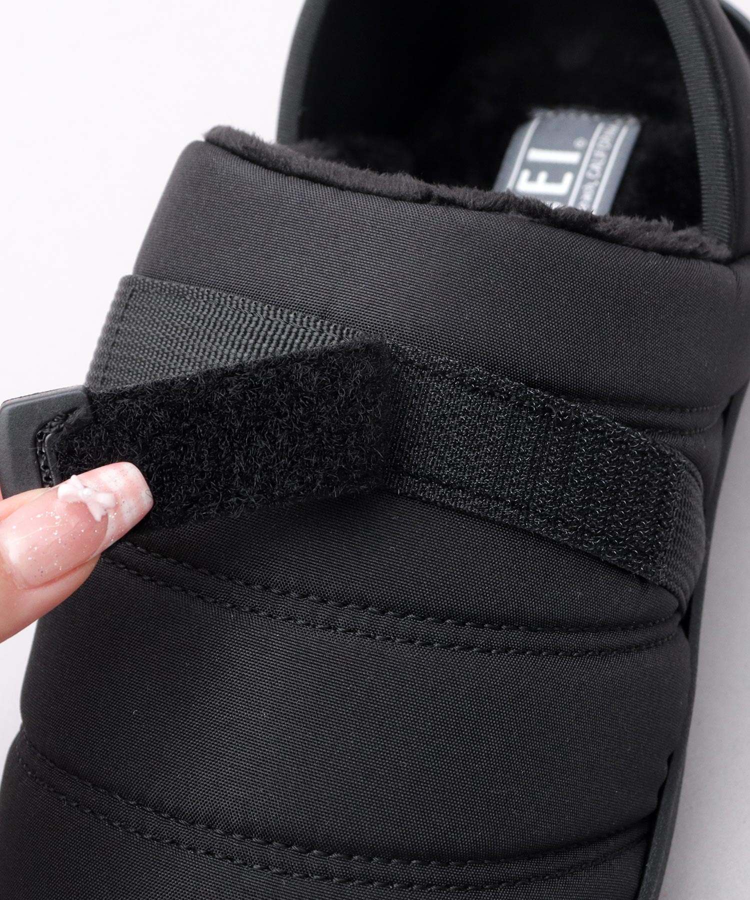 内側、インソールには、毛足の短いボアフリース生地を使用。