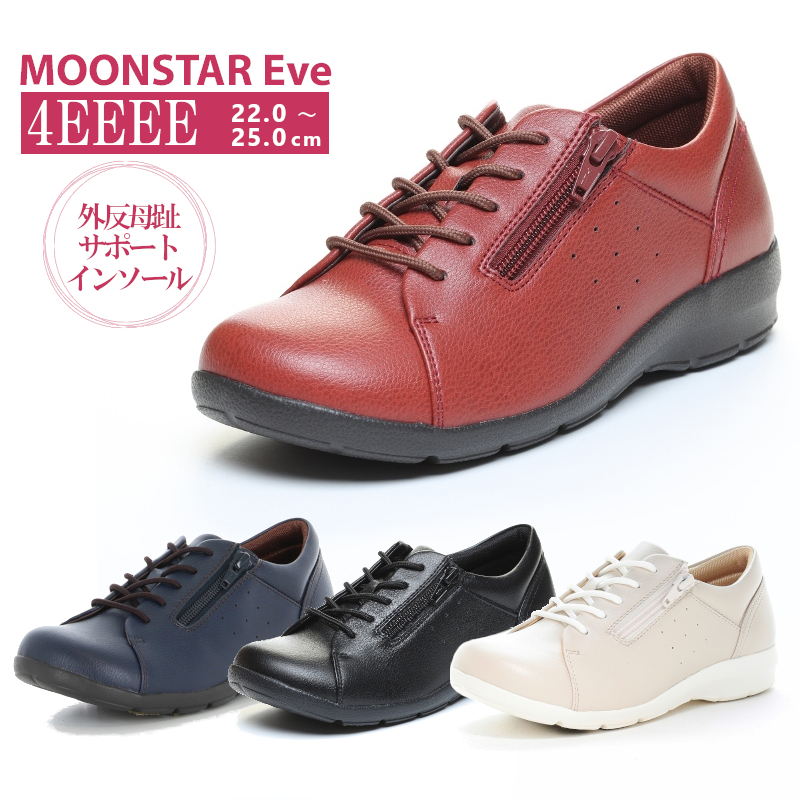 MOON STAR ムーンスター Eve イブ EVE 313 レディース 婦人靴 4E ワイド 幅広 ヒモ靴 ファスナー 母の日 敬老の日 送料無料 ブラック レッド ネイビー