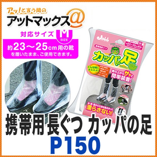 携帯用長ぐつ カッパの足【P142】 フリーサイズになります。 靴のサイズが小さい場合は、 レディース用をオススメいたします。 |  携帯用長ぐつ カッパの足 女性向け【P150】 女性向けサイズです。お靴のサイズ約23〜25cm の方にオススメ。 |