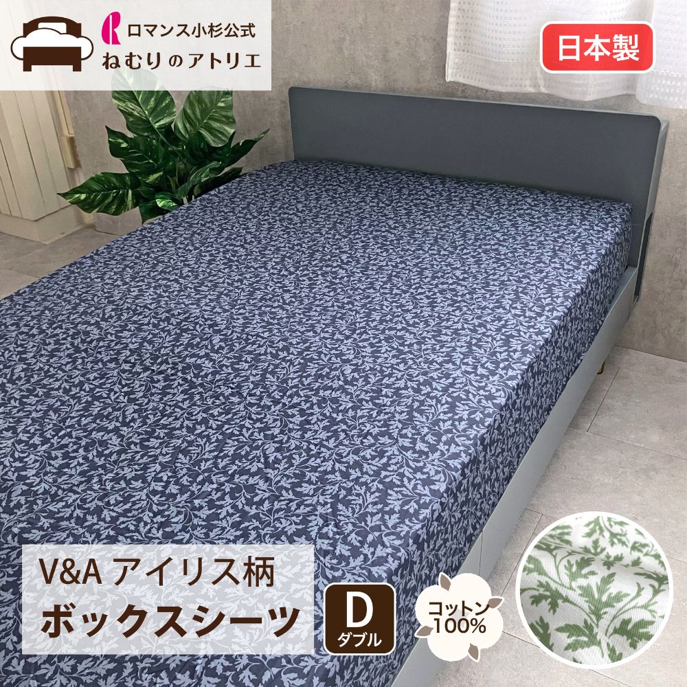 V&A ウィリアムモリス ボックスシーツ ダブル マチ30cm 綿100% 日本製 40サテン シーツ カバー ウォッシャブル 洗える