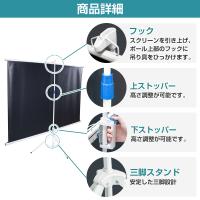 100インチ相当!自立型のスクリーンです。 オフィス会議、映画鑑賞、商用のプレゼンテーションやご家庭でのホームシアター 様々な場面で活躍ができます。 安定した3脚スタンド付きで、高さ調節も可能です! また、収納時は折り畳み、コンパクトに収納することができます。 左右にはブラックマスキングを標準装備です。 |