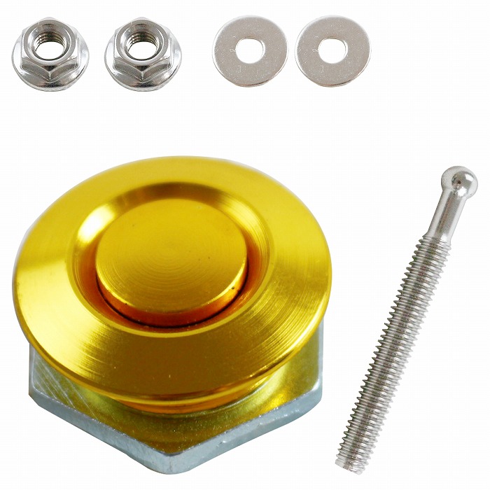 | 汎用 ボンネットピン ボンネットは高速走行時の走行風圧によってあおられ変形・破損の可能性が 否めないため、しっかりと固定する目的で取り付けます。 また、ボンネットの固定だけでなく、ボンネットのドレスアップや JDM/USDM(日本/アメリカ仕様にカスタムすること)などにもお使いいただけます。 【ステンレス製】 ナットなどの取り付け金具はステンレス製で耐食性が抜群です。 【ワンプッシュ式】 ワンプッシュでロック解除出来るので、作業スピードの向上も見込めます。 【汎用タイプ】 ロッド先端がボールジョイントになっているので、 10度前後ほど角度が付いていても取り付け可能です。 |