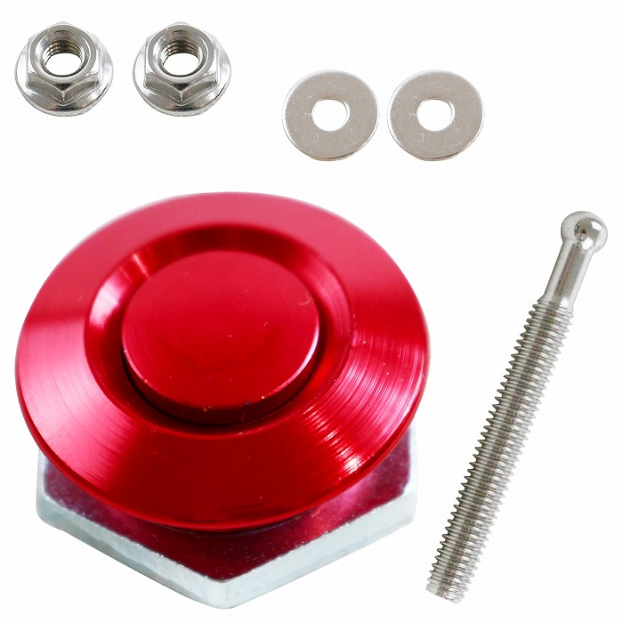 | 汎用 ボンネットピン ボンネットは高速走行時の走行風圧によってあおられ変形・破損の可能性が 否めないため、しっかりと固定する目的で取り付けます。 また、ボンネットの固定だけでなく、ボンネットのドレスアップや JDM/USDM(日本/アメリカ仕様にカスタムすること)などにもお使いいただけます。 【ステンレス製】 ナットなどの取り付け金具はステンレス製で耐食性が抜群です。 【ワンプッシュ式】 ワンプッシュでロック解除出来るので、作業スピードの向上も見込めます。 【汎用タイプ】 ロッド先端がボールジョイントになっているので、 10度前後ほど角度が付いていても取り付け可能です。 |