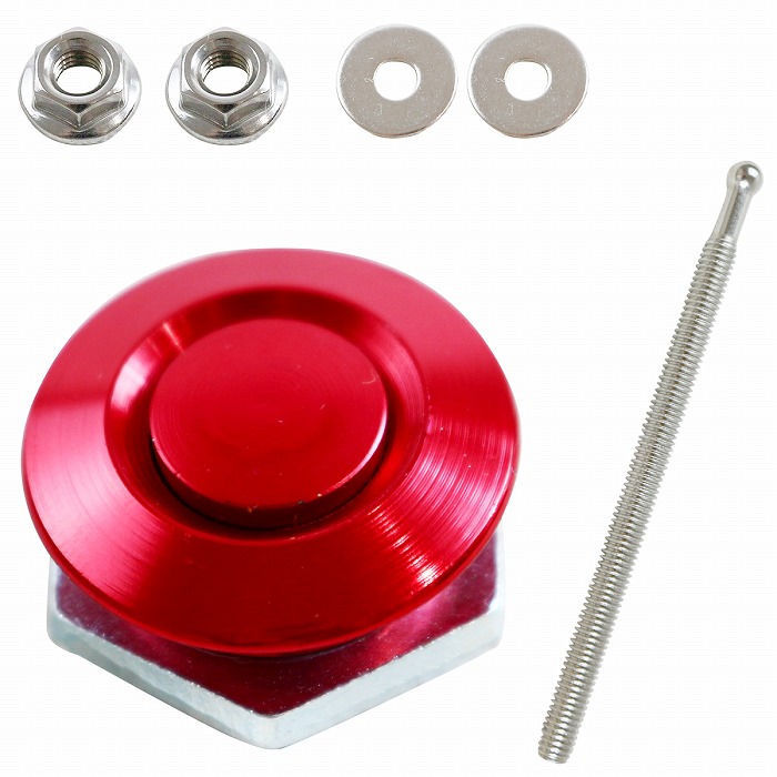| 汎用 ボンネットピン ボンネットは高速走行時の走行風圧によってあおられ変形・破損の可能性が 否めないため、しっかりと固定する目的で取り付けます。 また、ボンネットの固定だけでなく、ボンネットのドレスアップや JDM/USDM(日本/アメリカ仕様にカスタムすること)などにもお使いいただけます。 【ステンレス製】 ナットなどの取り付け金具はステンレス製で耐食性が抜群です。 【ワンプッシュ式】 ワンプッシュでロック解除出来るので、作業スピードの向上も見込めます。 【汎用タイプ】 ロッド先端がボールジョイントになっているので、 10度前後ほど角度が付いていても取り付け可能です。 |