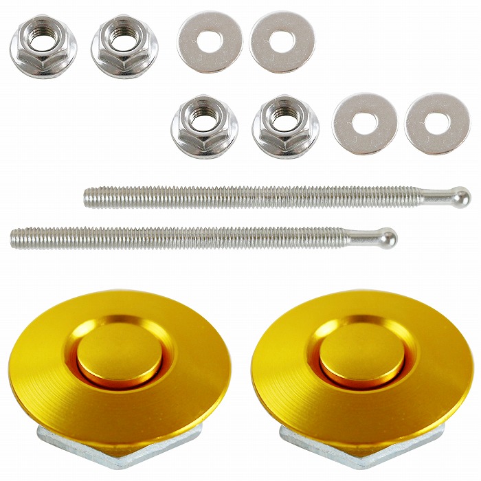 | 汎用 ボンネットピン ボンネットは高速走行時の走行風圧によってあおられ変形・破損の可能性が 否めないため、しっかりと固定する目的で取り付けます。 また、ボンネットの固定だけでなく、ボンネットのドレスアップや JDM/USDM(日本/アメリカ仕様にカスタムすること)などにもお使いいただけます。 【ステンレス製】 ナットなどの取り付け金具はステンレス製で耐食性が抜群です。 【ワンプッシュ式】 ワンプッシュでロック解除出来るので、作業スピードの向上も見込めます。 【汎用タイプ】 ロッド先端がボールジョイントになっているので、 10度前後ほど角度が付いていても取り付け可能です。 |