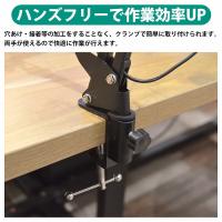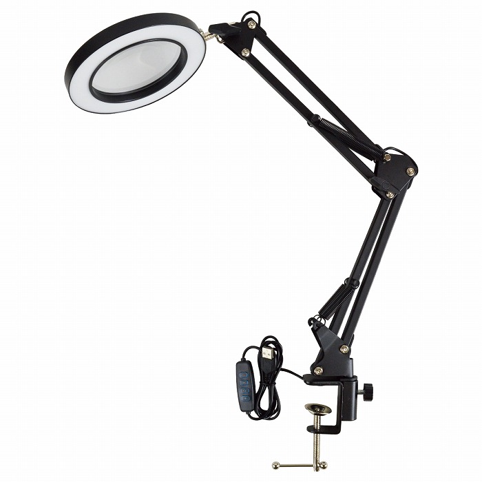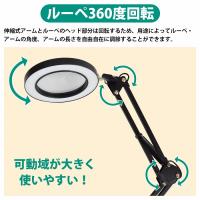 LEDライト付きの便利なルーペです。 精密作業、時計修理、宝石の鑑定、電子工作、模型作り、プラモデル作り、 ネイルアート、手芸、読書、彫刻など、この1台で幅広いシーンに大活躍します ★拡大鏡5倍 直径10.8cmの高倍率ルーペを搭載し、細かい部品や文字もくっきり見えます。 ※ルーペの倍率は参考例です。 使用方法や個人の視力等で個人差がありますので、予めご了承ください。 ★ルーペ360度回転 伸縮式アームとルーペのヘッド部分は回転するため、用途によってルーペ・アームの角度、 アームの長さを自由自在に調節することができます。 ★色温度3段階/10段階調光可能 操作が簡単なスイッチで3段階色温度を変更でき、更に+−ボタンで10段階の調光が可能です。 また、給電時で電源をオフにしている状態では電源ボタンが光るため、 暗闇でも電源が付けやすいです。 ★ハンズフリーで作業効率UP 穴あけ・接着等の加工をすることなく、クランプで簡単に取り付けられます。 両手が使えるので快適に作業が行えます。 ★USB電源 電池は不要で、ACアダプターやパソコンなどから給電することができます。 |