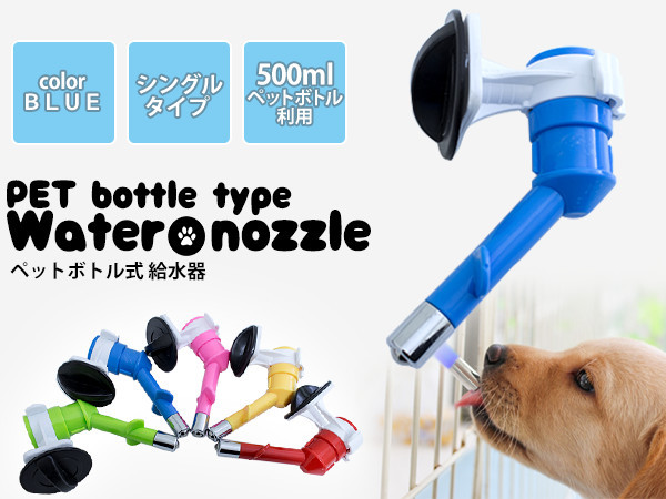 ペットケージやサークルに取り付けて ペットボトルで簡単水分補給! ワンタッチ操作で付け外しができ、水の交換が簡単です。 市販の500mlペットボトルが利用できます。 飲み口が一ヶ所のシングルタイプ。 |