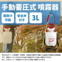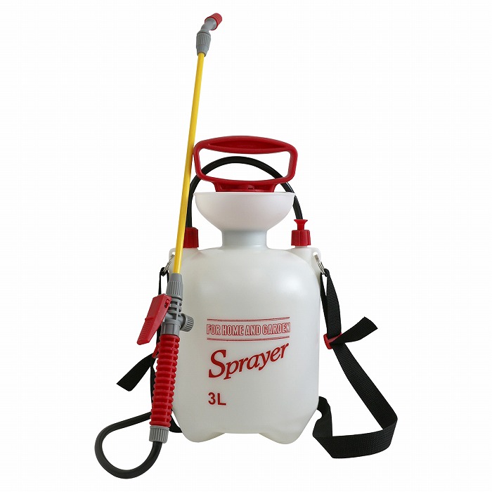 容量3リットル!肩掛け用の手動蓄圧式スプレーです。 【レバーロックで連続噴霧OK】 レバーを握り続けることなく散布を行うことが可能です。 蓄圧連続噴霧したい場合、レバーを前に押し、ロックします。 【ノズル先端で調節可能】 ノズル先端を回して、拡散タイプからストレートタイプまで調節可能です。 【肩掛けベルト付き】 肩掛けベルト付きなので女性や年配の方でも楽に作業ができます。 また、片手でレバーの操作ができるため、楽々噴霧ができます。 【用途】 ・畑やハウスの除草剤、農薬の散布 ・家庭菜園・花壇の散水、お手入れに ・簡単な泥落とし等の洗浄作業 など |