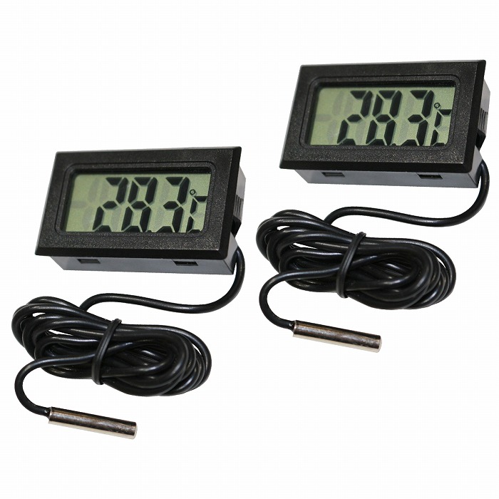 | ◆セット数:2個セット ◆サイズ(約):48×28×15mm ◆カラー:ブラック ◆素材:プラスチック ◆測定範囲:-50から+110度 ◆測定誤差:±1度 ◆ボタン電池:LR44×2(別途購入必要) ※ボタン電池1個でも動作しますが、2個装着することにより長期間動作します。 ※当商品は海外製品のため、多少の傷、汚れなどがある場合がございます。 予めご了承の上、お買い求め下さい。 |