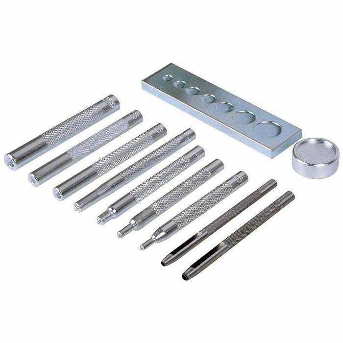 | <付属品> No.201 ×1本 No.831 ×2本 No.633 ×2本 No.655 ×2本 万能打ち台 ×1 打ち台 ×1 ハトメ抜きポンチ ×2 (3mm,2.5mm) ■海外製となりますので、日本製・ブランド品と同等の品質をお求めになる方や神経質な方はご遠慮下さい。 |