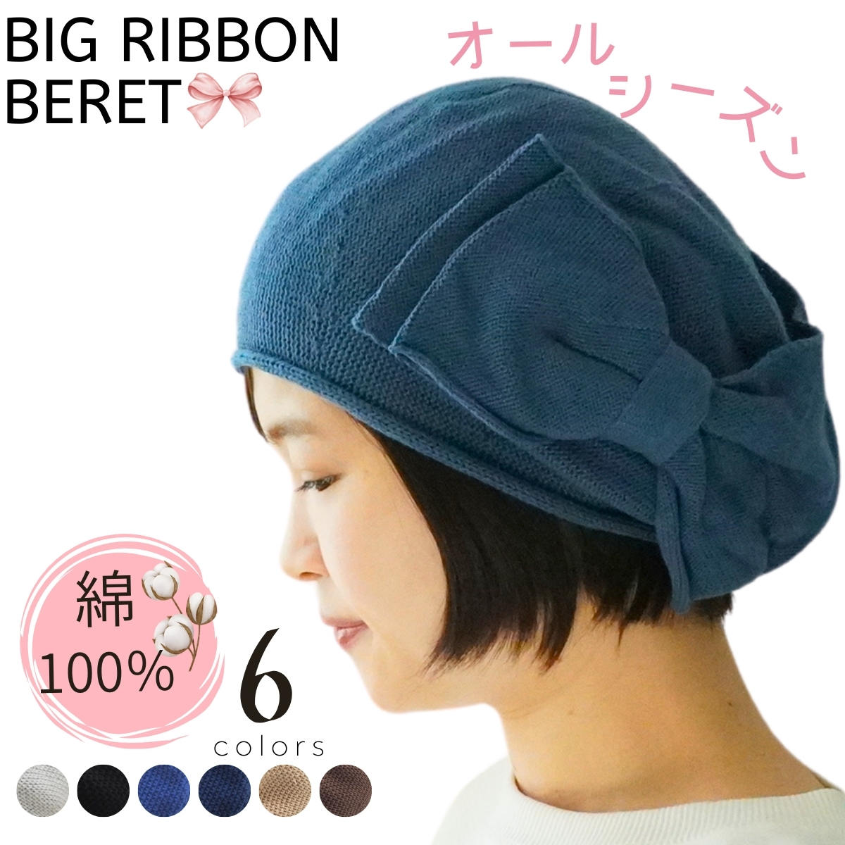 ビッグリボンベレー帽 01 医療用帽子 おしゃれ 秋冬 ケア帽子 ベレー帽 冬用 春夏