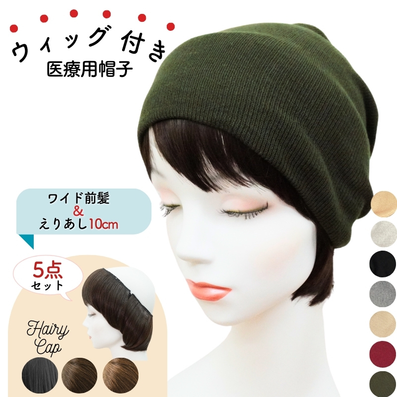 ウィッグ付き 帽子 医療用帽子 医療用ウィッグ 前髪付き 毛付き帽子 髪の毛付き帽子 冬用 抗がん剤 ニット帽 春夏 夏用 秋冬 おしゃれ 前髪ウィッグ 脱毛帽子
