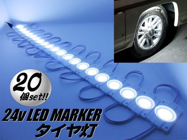 24v トラック LED タイヤ灯 サイド マーカー 20個 20コマ 白色 ホワイト カット可能 アンダー ライト ランプ バス 路肩灯