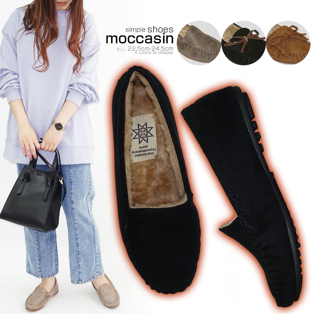 【30%OFFクーポン対象】モカシンシューズ レディース ローファー 内ボア スリッポン ファー ムートン 痛くない 履きやすい